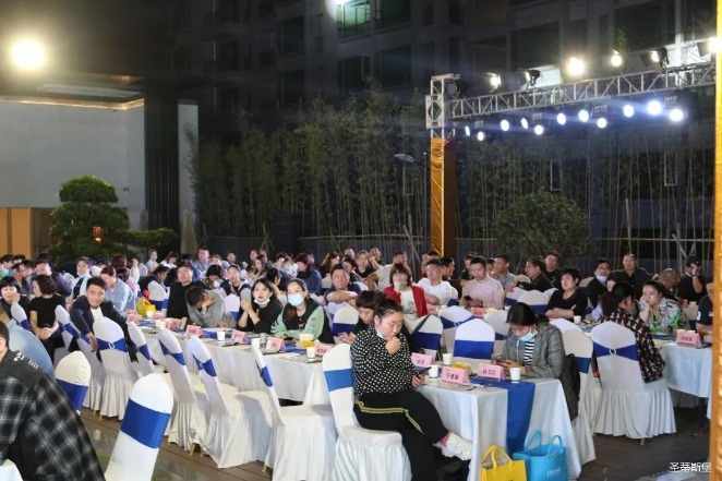 经销商晚宴当日晚6时许,以【乘“圣”跨越】为主题的,Z6.COM-尊龙集团集团第45届国际家具展接待晚宴暨2020年度优秀经销商颁奖盛典,在营销中心四楼景观花园隆重举行,来自全国各地的经销商朋友欢聚一堂,共同分享一场精彩纷呈的晚宴。