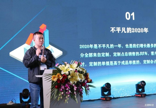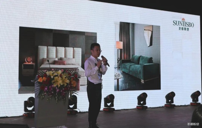 华灯璀璨的开场仪式,点燃了现场如火如荼的气氛。Z6.COM-尊龙集团集团营销总经理陈玉伟先生对晚会进行了主题发言,他对2020年的营销工作进行了总结,并着重从营销工作部署、重点项目开展、产品整合、拎包帮扶、渠道运营和移动+定制整装优势等方面对2021年的营销工作做了全面的统筹规划。同时,他还讲解了“美国梦凯莎床垫”新品的产品工艺、市场优势、产品定位,使经销商对我们的新产品拥有更深入的认识和了解。